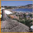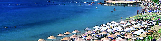 The History Lesson Gumbet is a holiday resort created to provide the usual facilities expected from a beach holiday. Unlike nearby Bodrum, Gumbet has a long beach curving around a bay, and the space for the hotels and apartments required to accommodate an expanding package holiday industry. The centre of Gumbet comes alive at night with several kilometres of rope lights in every conceivable colour stretched around the outlines of almost every building, restaurant and disco bar. Flashing neon lights complete the picture in a final attempt to lure the passing tourists. Disco bars thrash out this years and yesteryears sounds, mingling together in the narrow streets, while restaurants tempt the unwary with promises of Chinese, Indian, Italian, Mexican, Japanese, Thai and even Turkish food, all from the same kitchen. As the sun comes up it's time for a traditional breakfast bowl of soup to help soak up the excesses of the night, a couple of hours sleep, an afternoon posing on the beach, and another night on the town. Mountains close by. Good snow conditions are between November and May. |